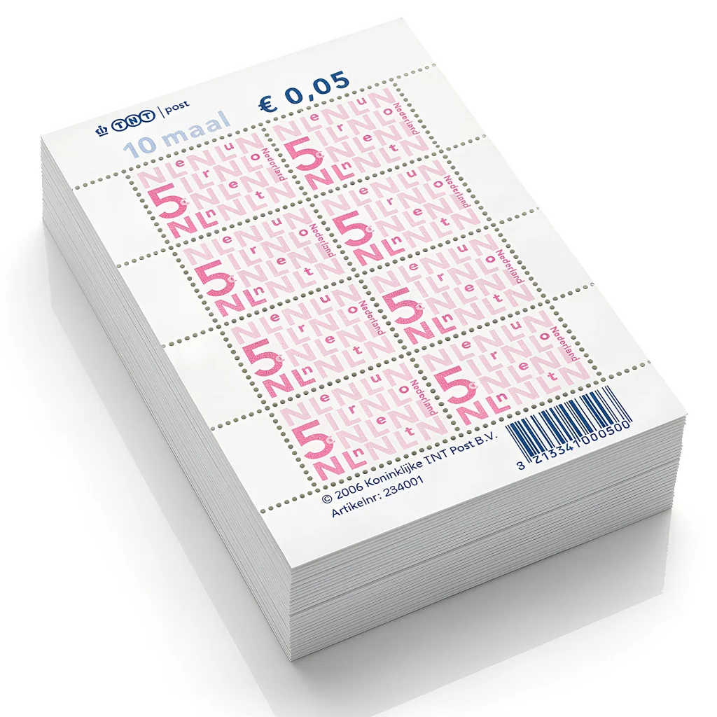 Komt u net een paar cent tekort voor de juiste frankering? Of gebruikt u oudere postzegels die niet meer precies aansluiten op het huidige tarief? Met deze officiële bijplakzegels van €0,05 vult u uw bestaande frankering eenvoudig aan.